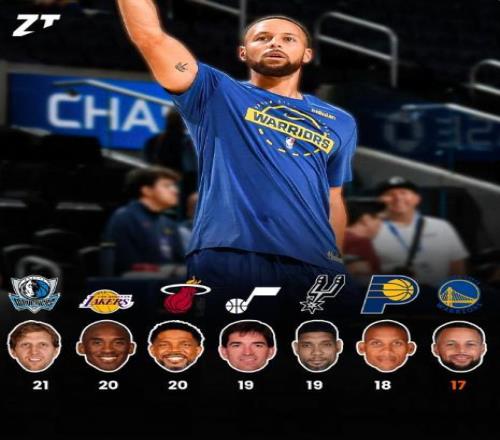 为单一球队效力17年,库里将解锁成就成为联盟历史第七人 -