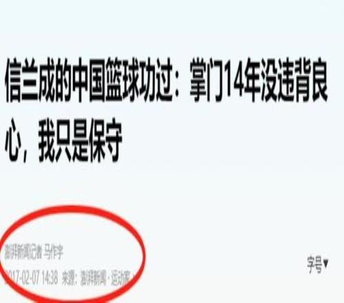 《李元伟:男篮孱弱因领导失职,信兰成居然能干14年》澎湃新闻2017-02-07