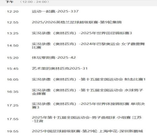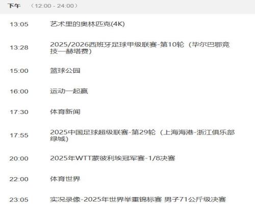 央视每周节目单显示,央视体育频道(CCTV5)将从10月31日17:55开始,聚焦直播上海海港与浙江队的较量。这场比赛结束后,奥林匹克频道(CCTV16)则将从19:55开始,继续关注直播上海申花主场与深圳新鹏城的比赛。