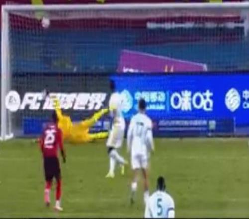 △北京国安外援法比奥第二次主罚点球瞬间(视频截图)
