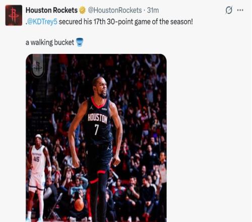 火箭队轻取2连胜!逆转击败灰熊一口气获3大喜讯,申京KD双核合砍66分,三巨头携手齐破纪录。