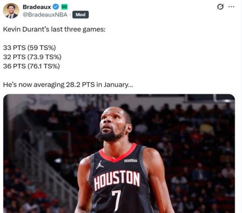 之所以要依靠申京维持局面,主要原因是杜兰特上半场手感不佳,好在他下半场找回状态连中三分收割胜利。