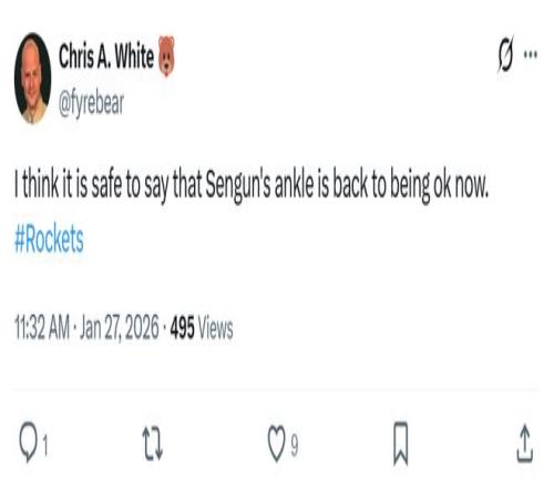 赛后火箭媒体人Chris A. White点出申京状态回暖的核心原因:“现在终于可以说申京的脚踝已经完全恢复健康。”